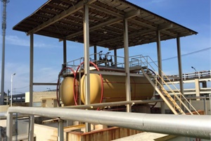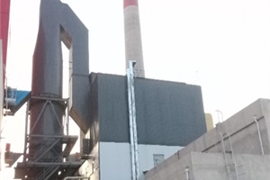鍋爐排出的煙氣先經過預除塵器,通過脫硫塔底部布風裝置水平進入塔內,折向上方經過文丘里管段使氣流加速,托起上方吸收反應段內的“床層”,將一定量的消石灰和水在文丘里管段的上方加入吸收反應段內,在脫硫塔吸收反應段“床...