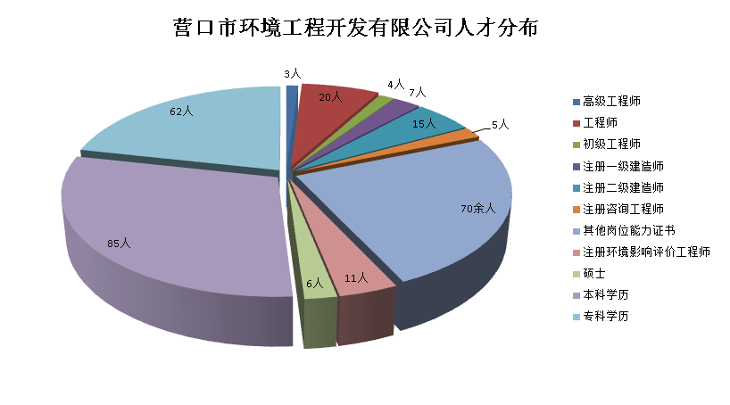 公司以“創新、誠信、務實、高效”的經營理念和“想的永遠比客戶考慮的多,做的永遠比客戶要求的高”的服務宗旨。這些觀念激發了全體員工的積極性,為營口環境贏得了利益,也造就了一支優秀的具有現代經營理念的管理隊伍,一支精通技能、兢兢業業的技術管理隊伍,形成了年輕化、專業化、知識化的高效的人才梯隊。